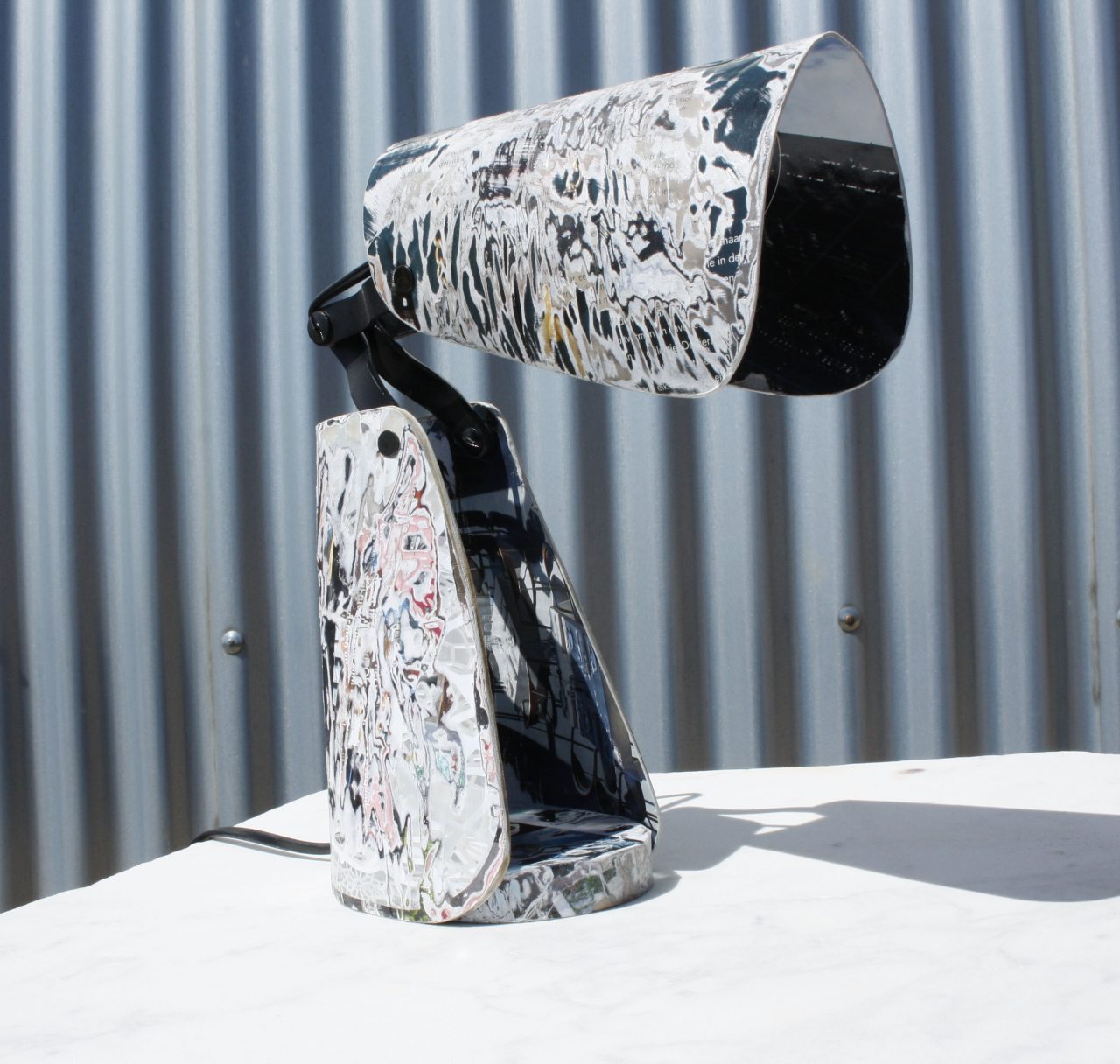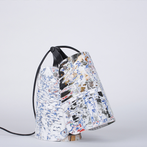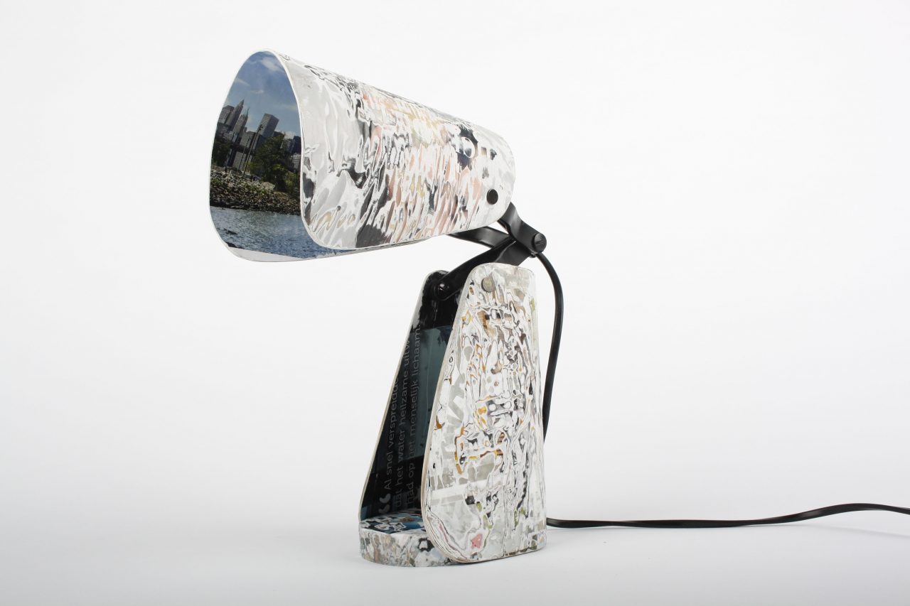Undercover is a special collection of table lamps that can hide under there cover to create a special ambience of light. You can lift the cover to make a functional lamp wherever you need it. We were searching for an design that comes out of one shape so the two scales play together with the light. The lamps are created in a special way of laminated pieces of veneer and magazine paper. Therefor every lamp is unique and tells there own story Figuratively and literally.