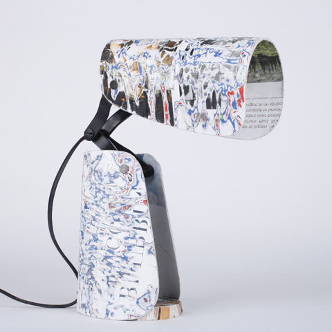 Undercover is a special collection of table lamps that can hide under there cover to create a special ambience of light. You can lift the cover to make a functional lamp wherever you need it. We were searching for an design that comes out of one shape so the two scales play together with the light. The lamps are created in a special way of laminated pieces of veneer and magazine paper. Therefor every lamp is unique and tells there own story Figuratively and literally.