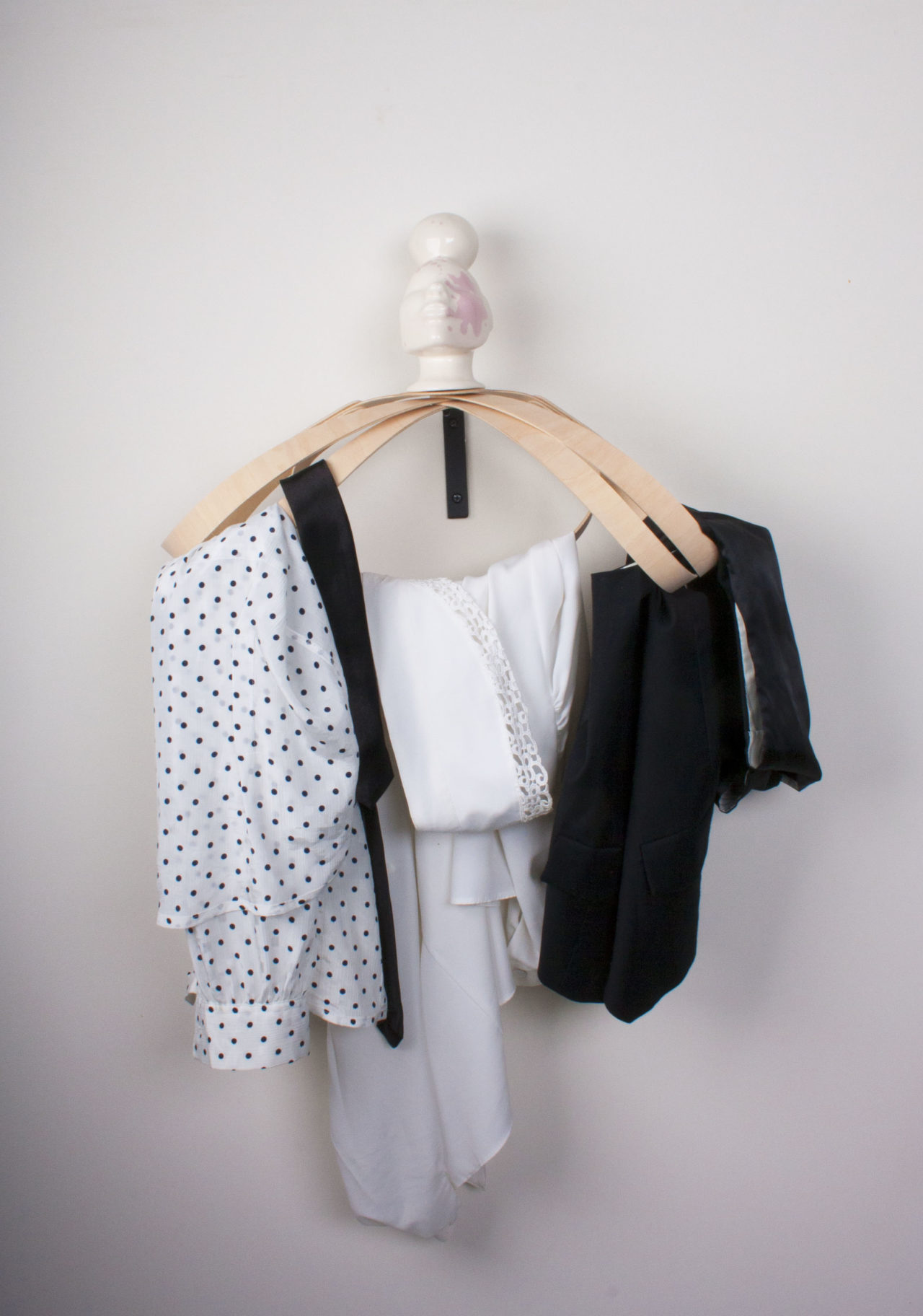 That is the opinion of designers Tijn van Orsouw and Roos Sanders, who designed this clothes hanger together. This hanger combines their two worlds. Tijn uses functional solutions to shape an aesthetic image, Roos brings characters into the interior to create a feeling of safeness in a home.
